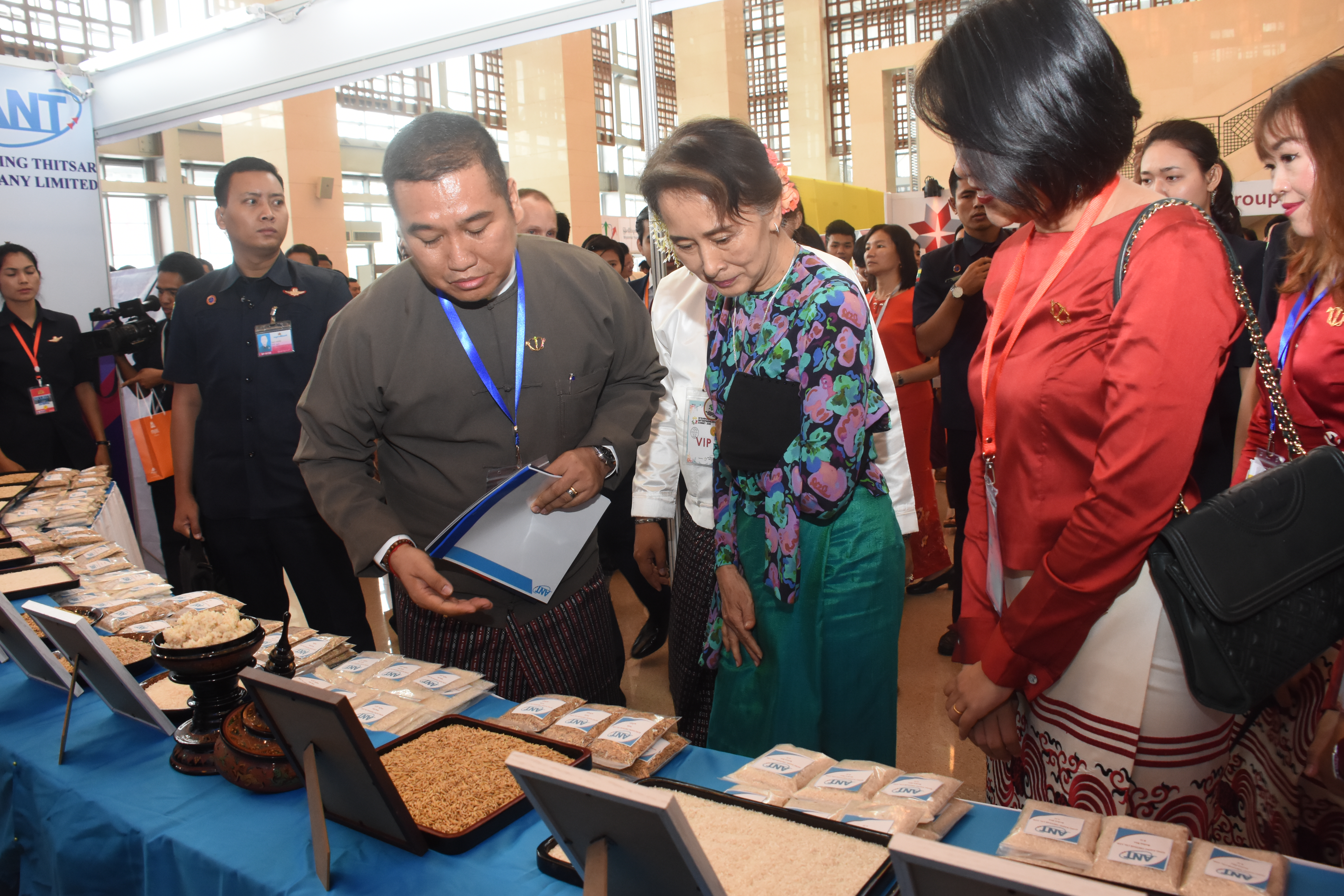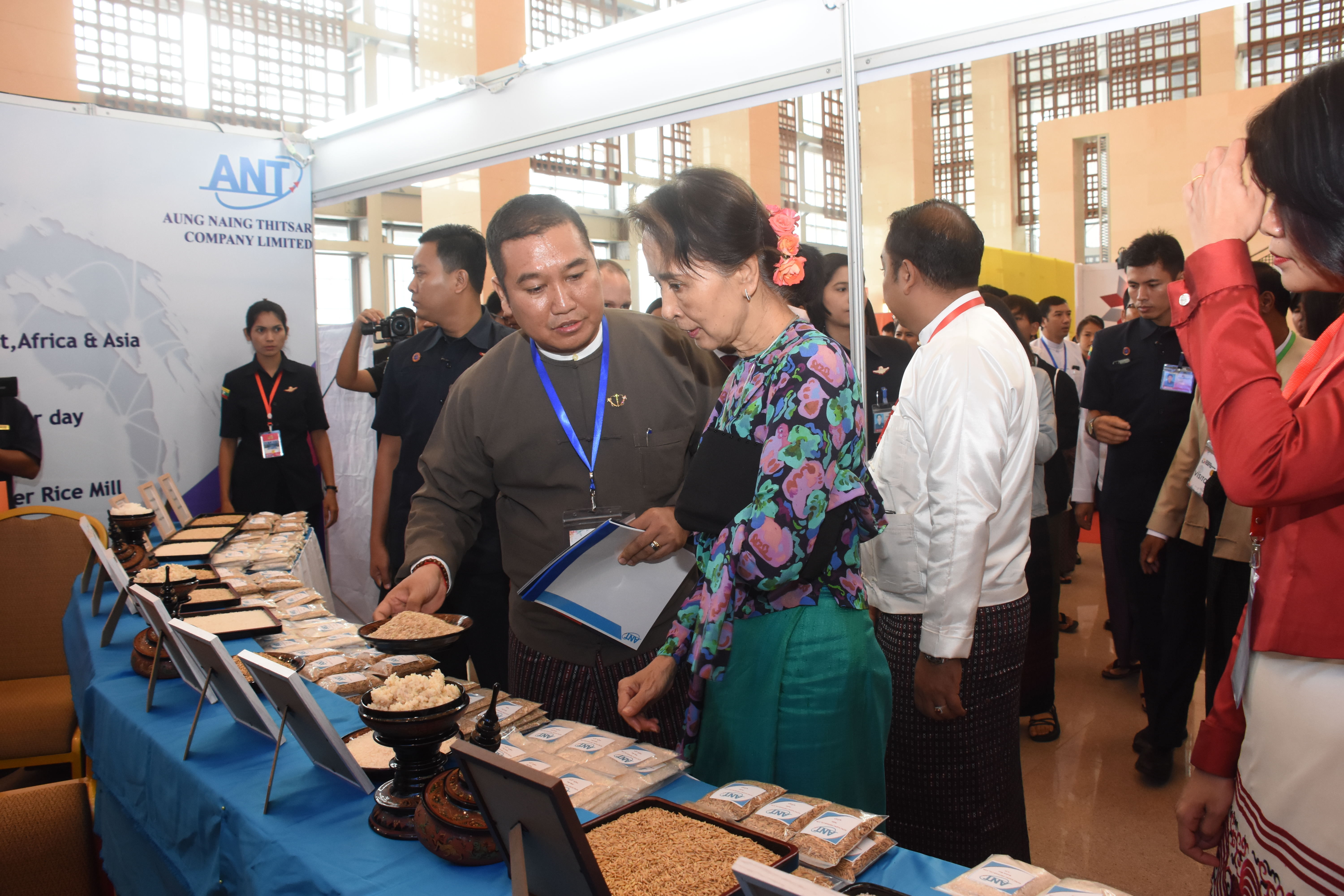 Aung Naing Thitsar supported MYEA Myanmar Entrepreneurship Summit 2018 with the sponsorship which was held in Naypyitaw (MICC II) on 14.12.2018 and participated its Agricultural Supply & Value Chain booth display which was graced by the visit of H.E State Counsellor, Daw Aung San Suu Kyi and was encouraged to ever strive to upgarde Myanmar rice export sector in the international market standards and quality (14.12.2018).
